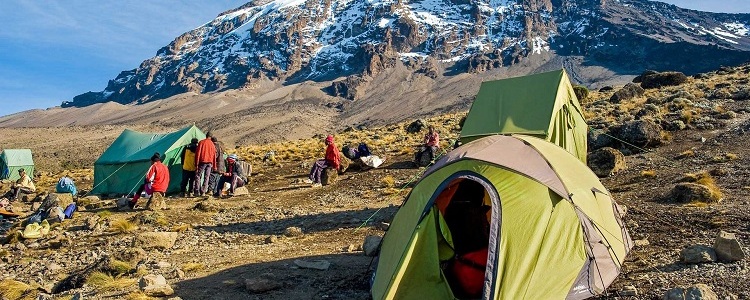 Barranco Camp, set among stands of Senecio kilimanjari, is considered to be the most scenic campsite on the Machame Route.